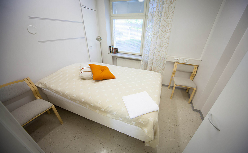 Makuuhuoneeseen mahtui vain 120cm leveä sänky, joten ei ole rehtorilla ollut luksusmaisesti tilaa kansliassaan.